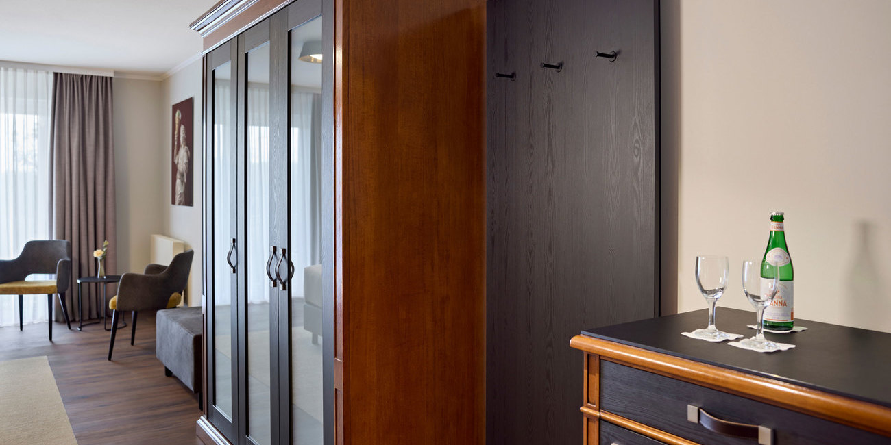 Unser Komfort Zimmer im Marc Aurel in Bad Gögging bietet Ihnen ein luxuriöses Ambiente für einen erholsamen Aufenthalt. Das Highlight des Zimmers ist das Kingsize-Bett mit den Maßen 180 x 210 cm oder wahlweise ein Doppelbett mit 2 separaten Matratzen je 90 x 200 cm, das für eine angenehme Nachtruhe sorgt.